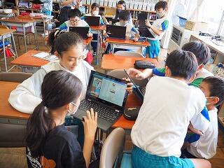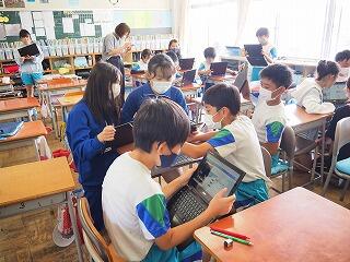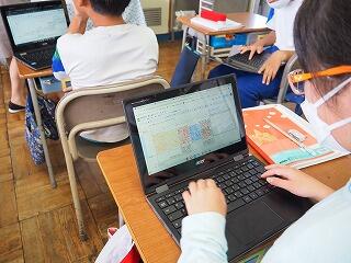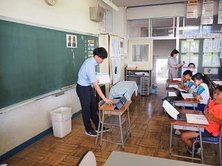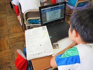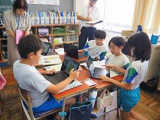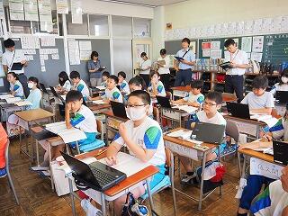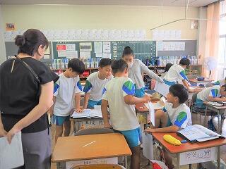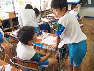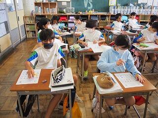 今日は、「注文の多い料理店」の学習で、現実世界にもどってきた紳士の変容を読み取りました。グループや学級全体で話し合い、意見を交流しながら、作者「宮沢賢治」からのメッセージを考えることができました。ワークシートやタブレットPCを使いながら、進んで学びに向かっている5年生です。