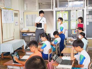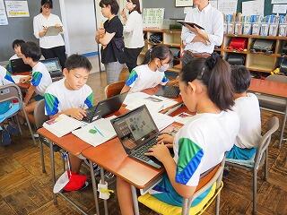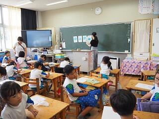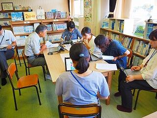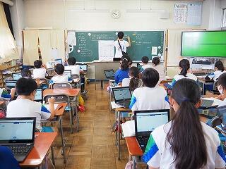 放課後、授業研究会を行いました。先生たちでグループを作り、授業の振り返りを行った後、指導主事の先生から今日の授業の成果と課題について話を聞きました。わかる授業を目指して先生たちは日々頑張っています。