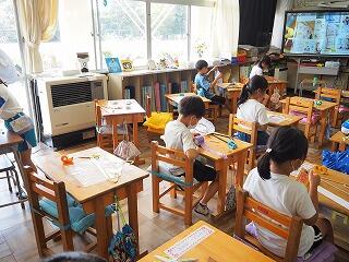 1年1組 図工 「ひらひらゆれて」 風で揺れる作品をつくりました。
