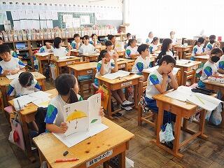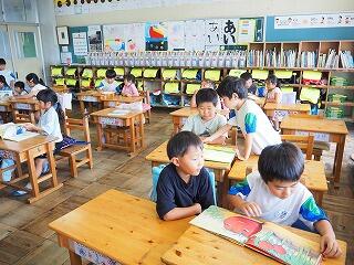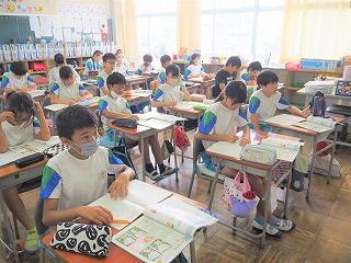 1年2組 国語 「並行読書」 隣の友達と仲良く物語を読みました。