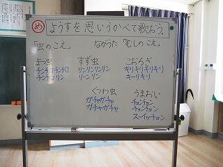 2年2組  音楽 「虫の声」 音楽室を暗くして秋の虫の声を聴きました。