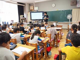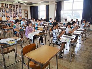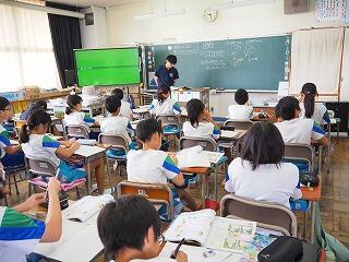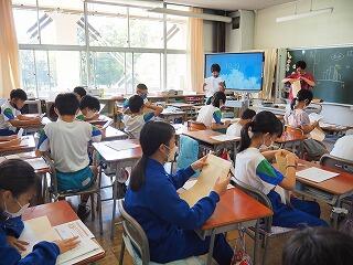真岡市教育委員会の指導主事の先生をお呼びして、5年2組で研究授業を行いました。今年度の学校課題は「自ら学びに向かい、豊かに表現する子どもの育成~話合いを通して考えを広げる授業づくりを目指して~」です。国語を中心に「話合い」を活動の軸に捉え「読みや理解を深める授業を目指しています。