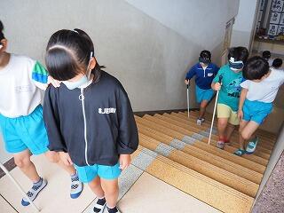 4年1組 総合的な学習の時間 白杖を使って視覚障害者の体験をしました。