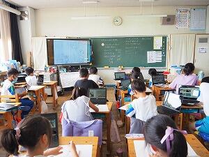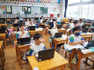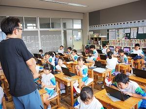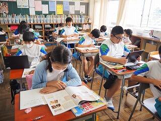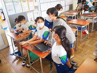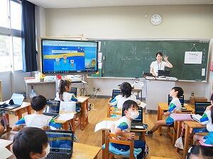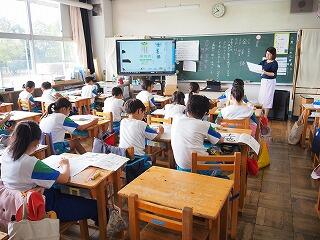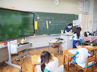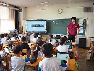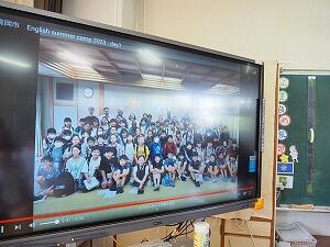 6年1組 外国語科 授業の最後に真岡市主催のもおかイングリッシュサマーキャンプの活動動画を視聴しました。サマーキャンプは自然教育センターで8月1・2日に行われ、長田小からは5・6年生の希望者16名が参加しました。定員は120名で申し込み順で参加者が決まる活動です。来年もぜひたくさんの長田っ子に参加してもらいたいです。