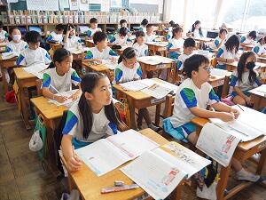 今日は朝から強い雨が降り続き、室内で過ごす1日となりました。午後2時過ぎには雨もやみ、通常の下校となりました。(低学年が14時35分、中学年と高学年が15時20分)