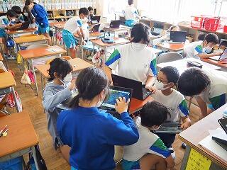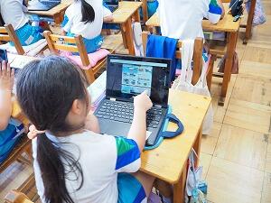 4年2組 社会 水害の被害についてタブレットPCでまとめました。