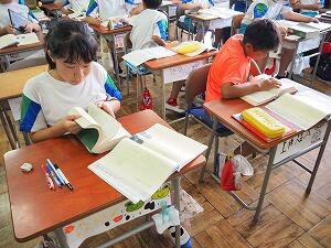 1年1組  国語 夏休みの思い出を作文に表しました。