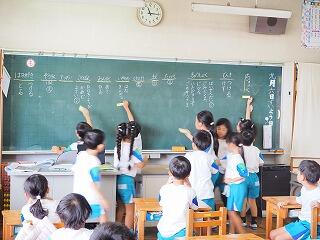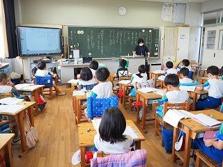 2年1組 国語 漢字の書き順をみんなで確かめました。
