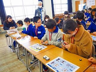 1時間目は、オリジナルレゴカーをグループの流れ作業で効率よく組み立てる活動をとおして製造業の現場体験をしました。2時間目は、ブースに分かれて、ものづくり体験をしました。