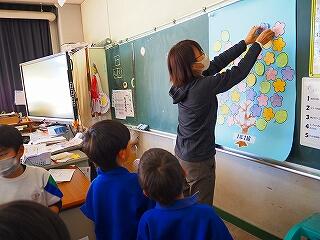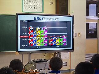 2年1組 図工 音づくりフレンズの作品を電子黒板で鑑賞しました。
