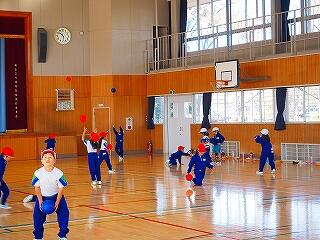 1年2組 体育 ボールで楽しく遊びました。