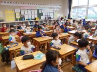 桜の花びらに祝福されて迎えた4月8日。2年生になり少しお兄さんお姉さんになった73名の子供たち。始業式では、校長先生のお話を聞いたり、担任発表では、どの先生が担任かと耳をそばだてたりと、とってもかわいい2年生でした。給食では、桜ゼリーが出て、みんな大喜びでした。