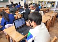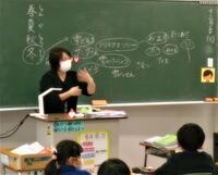 2年生は、生活科でミニトマトを育てています。今日は、ミニトマトの世話の仕方について学習しました。生活科の教育番組を視聴した後、みんなで話し合いました。家で野菜を作っている人は、野菜の世話のお手伝いをした経験をもとに「わき芽を取る」などの意見を出すことができました。