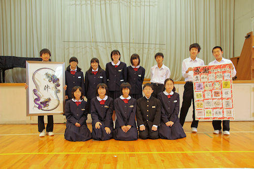 生徒会プレゼントの交換。野澤さんのスピーチもバッチリ!