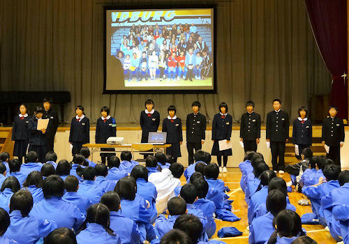 10:00から、体育館にて「サンドバーグミドルスクール訪問団歓迎式典」を開きました。