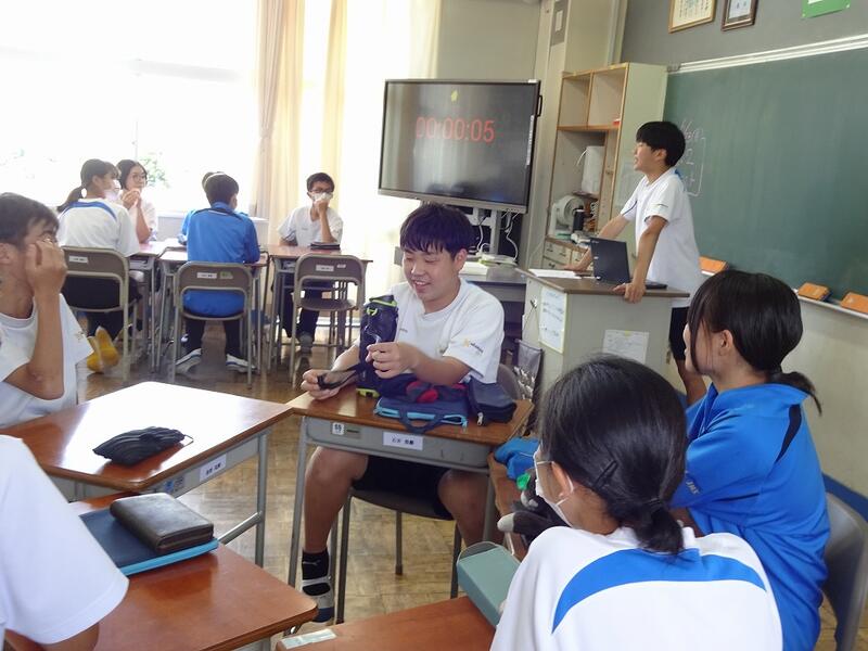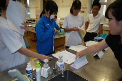 多目的室では、運動会の色別対抗リレーに向けて、代表生徒が集まり、打ち合わせを行っていました。