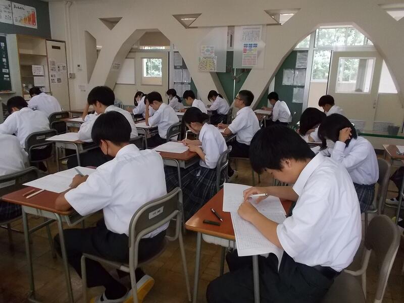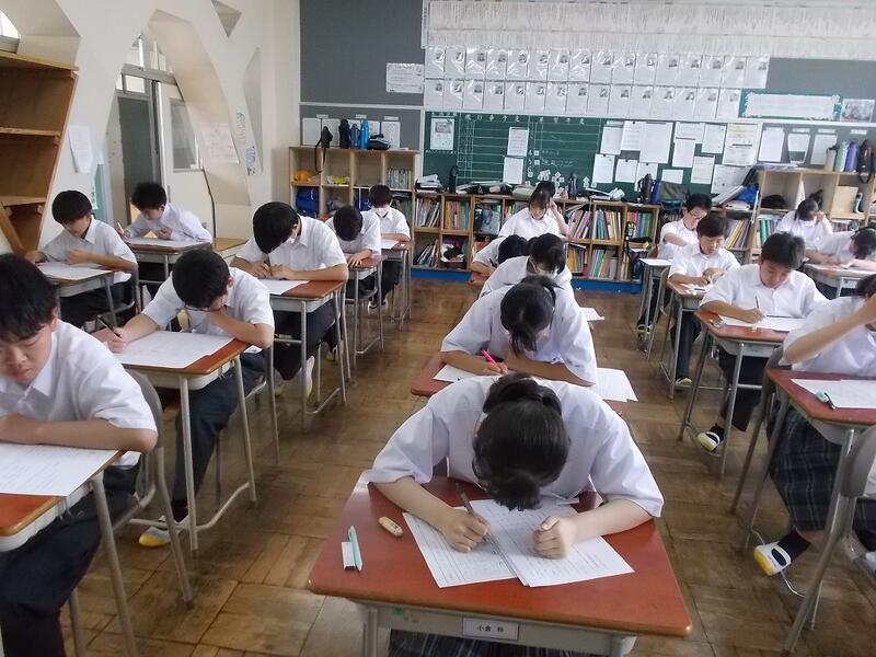 第1学期の期末テストが2日間の日程で始まりました。1年生にとっては初めての定期テスト。前日までの学習の成果を十分に発揮してほしいと思います。テストが終わるとすぐに7月。3年生は今週末から修学旅行。1,2年生は7月1日に遠足が実施されます。それらを楽しみにしながらも、学習にもしっかりと取り組み、文武両道を極めてほしいと願っています。