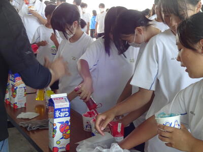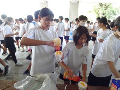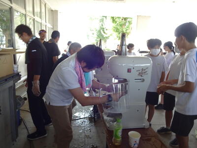 昼休みから5校時にかけて、NFAの皆様のご支援により、かき氷を配布致しました。今年は、中八の方やOBの方の御協力も賜り、大変感謝しております。生徒たちは、今年も大変喜んでいました。子供たちも、NFAの皆様も笑顔があふれ、素晴らしい時間を共有することができました。