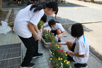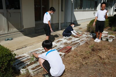 本校の校庭は広く、管理の行き届いていない場所があるため、生徒がよりよい環境で生活・学習できるように、環境ボランティアを募集いたしました。9名の保護者の方が参加してくださり、1時間にわたって植木の剪定、草刈りを行っていただきました。暑い中での作業でしたが、黙々と作業をしていただき、大変きれいになりました。ありがとうございました。