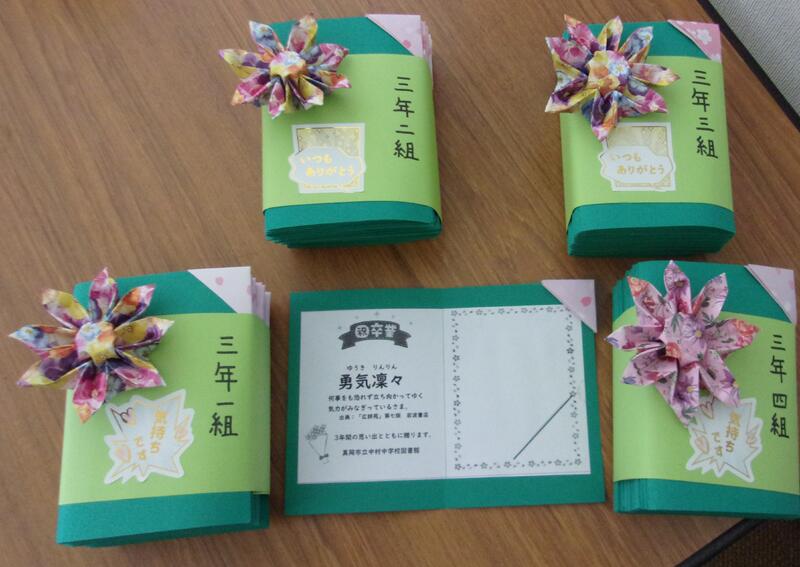 学校図書館司書の藤田先生から、卒業する3年生へ、卒業記念品を作ってくれました。