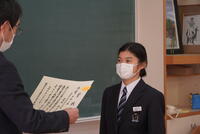 2月15日(水)3年生にとっては最後の校長講話。表彰式がありました。