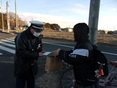 1月20日(火)から22日(木)の3日間で、担当の安全委員の生徒が、交通指導員さんのところに行き、交通指導員さんに感謝する会として、お手紙とホッカイロを贈りました。寒い日も暑い日も、私たちの安全を見守ってくださる指導員さんに感謝の気持ちを持って、安全に登下校していきましょう。