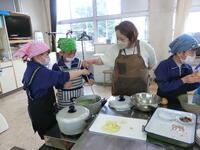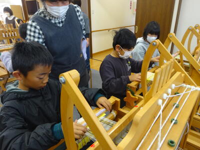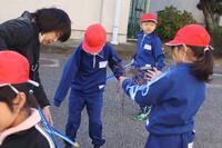 生活科の時間に、朝顔のつるを使って、リースの土台を作りました。長いつるを丸く巻いていきます。朝顔リースボランティア皆さんに手伝っていただきました。飾り付けが楽しみです。