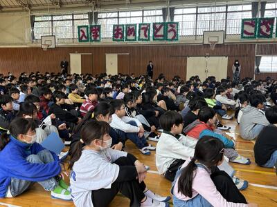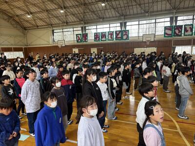修了式が体育館で行われました。体育館での集会活動は久しぶりでした。修了証書を各学年の代表が手渡されました。そのあと、1,3,5年生の代表児童の作文発表、校長の話がありました。春休みの過ごし方について児童指導主任の話もありました。どの学年も、とても良い態度で参加できました。