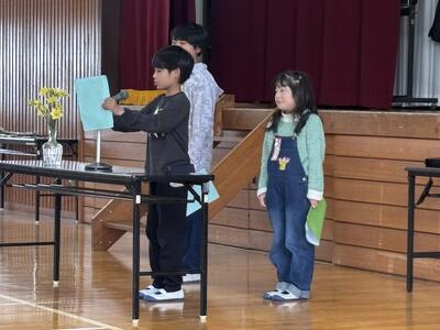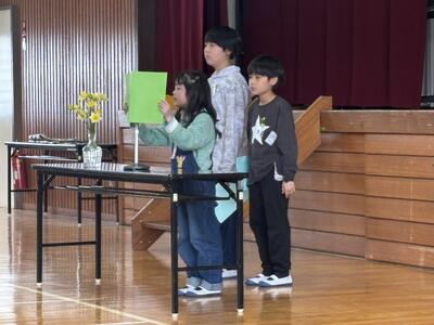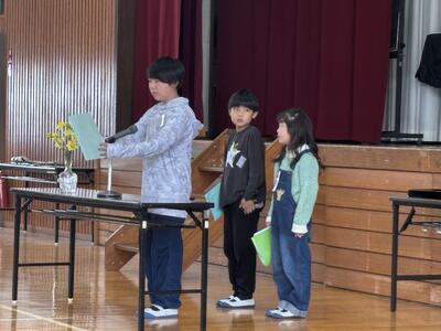 1~4年生と6年生とのお別れ式を行いました。4年生が中心となって、企画、運営を行いました。