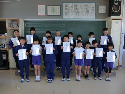 今日の賞状伝達は、理科展、書初め、美術展などの入賞者や各学年の縄跳び優秀者です。たくさんの児童が表彰されました。おめでとうございます。