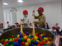 初回は40人ほど集まりました。参加児童は一日1回スタンプがもらえます。