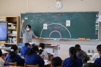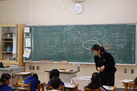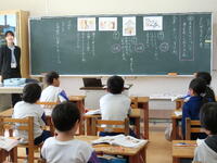 職員研修で、2年生の算数の授業参観を行いました。「分数」につながる学習でした。