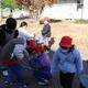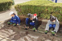 環境教育の一環として、学年花壇にパンジーとビオラを植えました。写真は、5年生の活動の様子です。