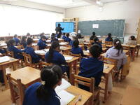 今日は、学力向上コーディネーターの先生による授業参観日です。授業を振り返り、本校の学校課題についての研修を行いました。
