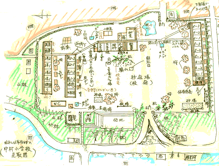 → 「中村国民学校長日誌 抄」(「真岡市史」) → 「荘厳寺への学童疎開」 → 市ヶ谷国民学校学童疎開 当時の中村小学校見取図(神奈川にお住まいの村石さん提供)→中村小見取図(gifイメージ) |