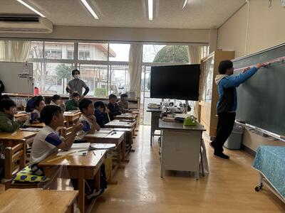 1~4年生と6年生とのお別れ式を行いました。4年生が中心となって、企画、運営を行いました。