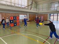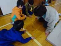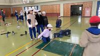 1年生の生活科で、昔遊び行いました。おじいちゃん、おばあちゃん、ボランティアの方々に昔の遊びをやり方を教えていただきながら楽しく活動できました。