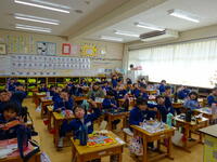 低学年は、いつも嬉しそうにお弁当を見せてくれます。笑顔いっぱいのお弁当の日、作ってくださった方に感謝をしていただきました。
