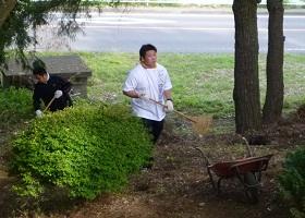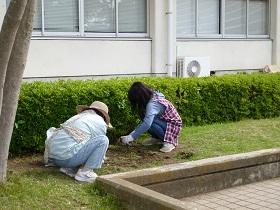 中庭農園の除草(5年生) プール前農園の除草(6年生)