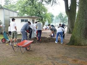 今回の奉仕作業は、総務・環境整備委員の方々で、運動会に使用するトイレの清掃を中心に行っていきました。中村クラブの保護者の方や児童が、草刈りや石拾いをしてくれました。皆さまのご協力に感謝いたします。おかげで、安心して運動会を迎えられそうです。