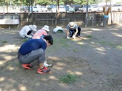 続いてプールサイドやその周辺の清掃をしていただきました。6月1日(木)には、子どもたちによるプール清掃も予定されています。