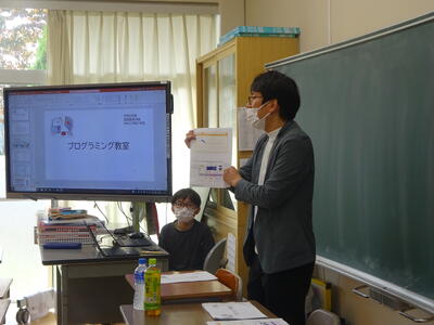 今回は、プログラミング教室でした。講師の方(2年生の保護者)をお招きして、親子で仕組みなど教えていただき、プログラミングを体験しました。