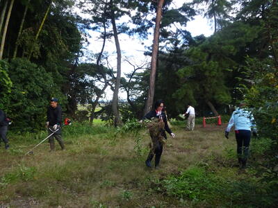 曇り空のもと、環境委員会を中心に、赤松林と学校西側土手の下草狩りを行いました。また、元PTA会員の地域の方々にもお手伝いいただきました。おかげ様でとてもきれいに整備されました。ご協力大変ありがとうございました。