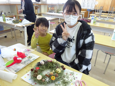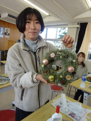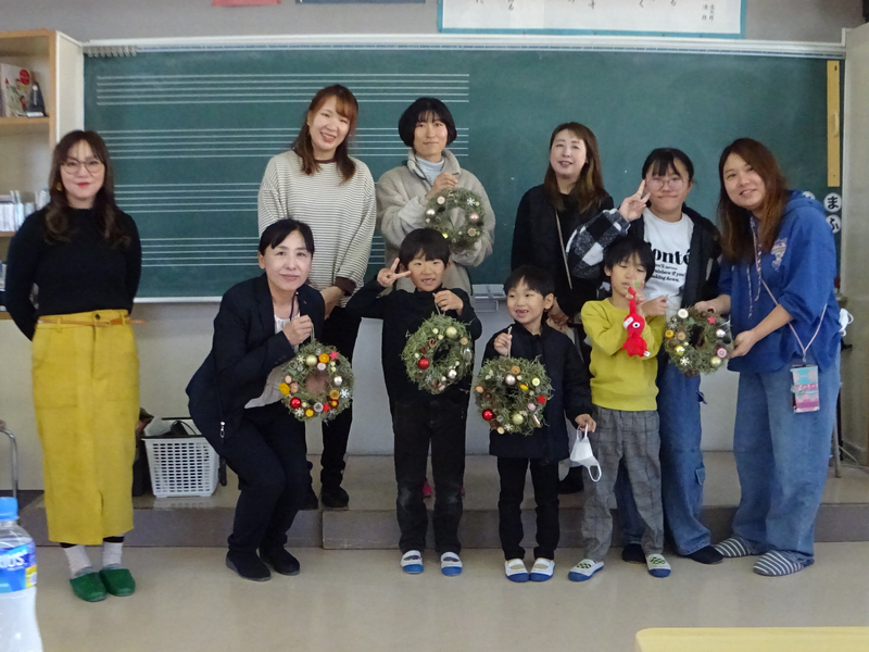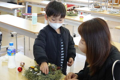家庭教育学級でクリスマスリースを作りました。親子で好きなオーナメントを飾り、オリジナルのリースが完成しました。親子でゆったりとした時間を過ごすことができました。