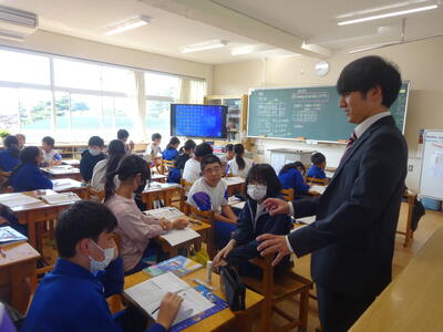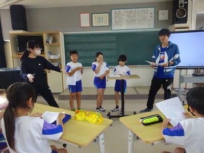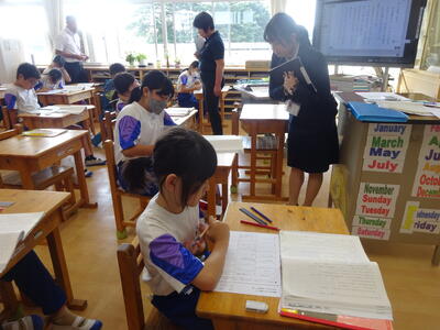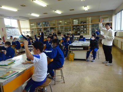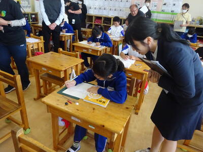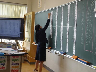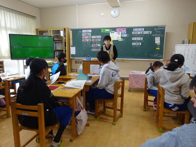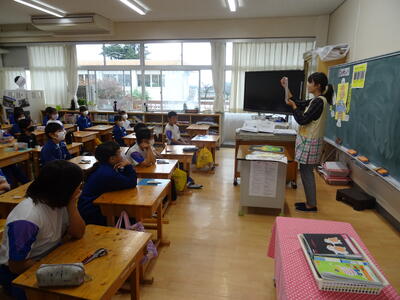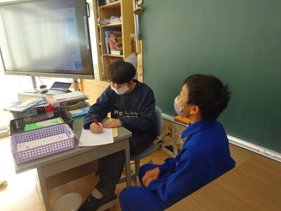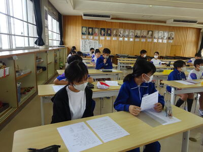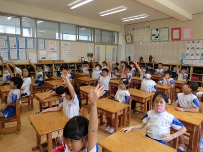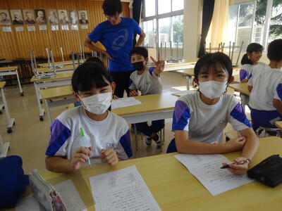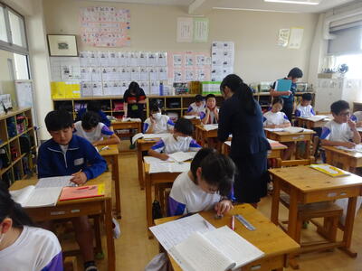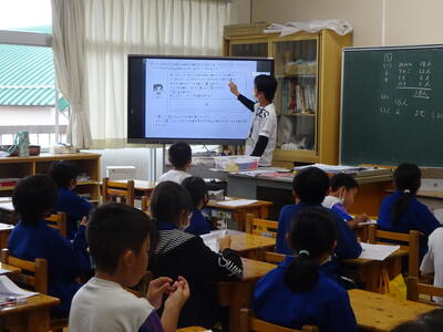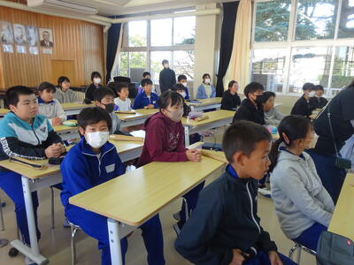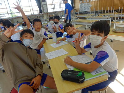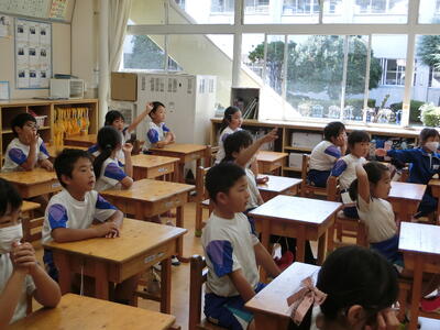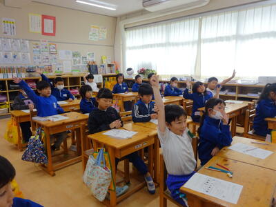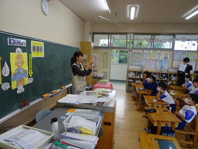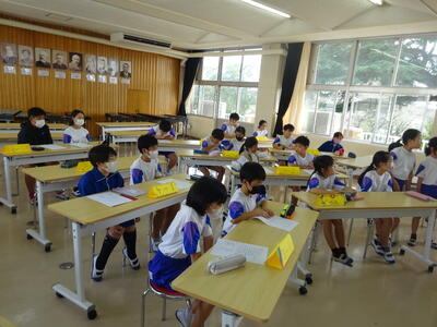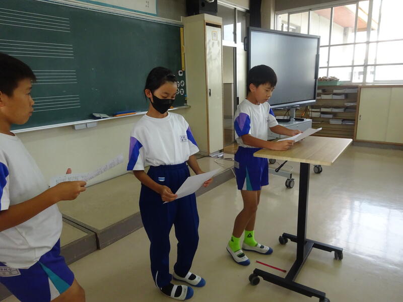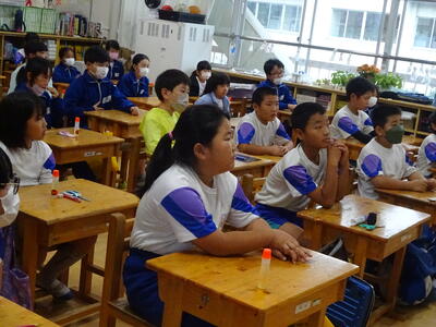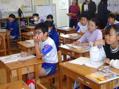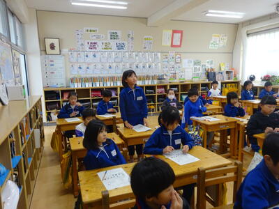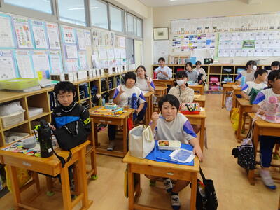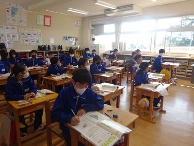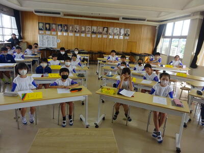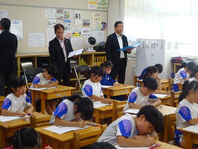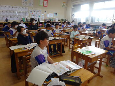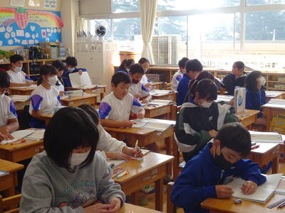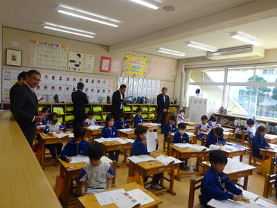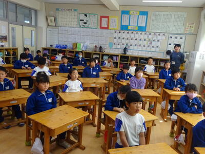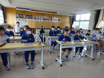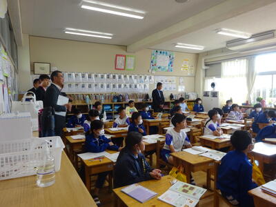 今日は、1、2時間目に、教育委員会から教育長さんをはじめ、お客さんが全クラスの授業を参観しました。どのクラスも担任の発問に反応し、自分の意見を発表していました。