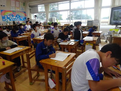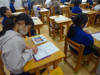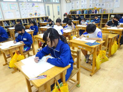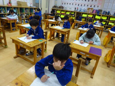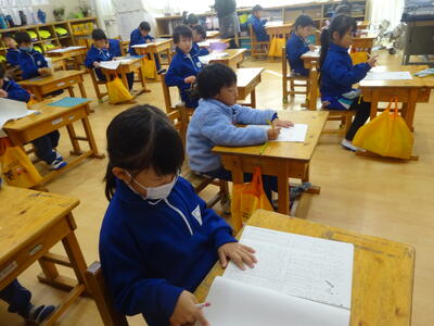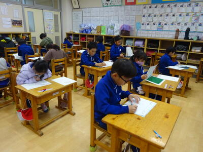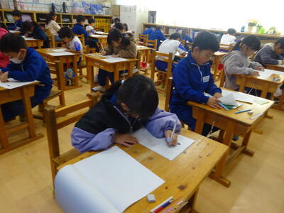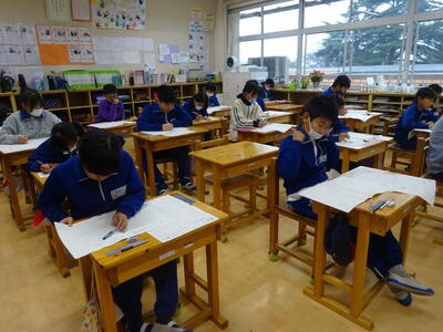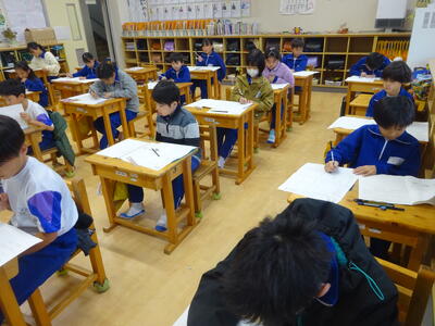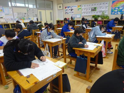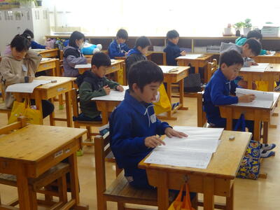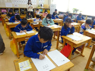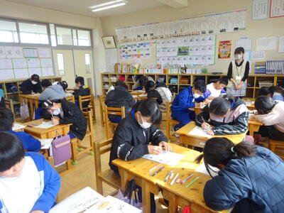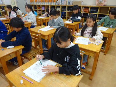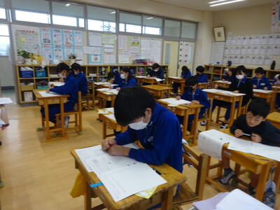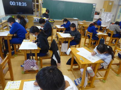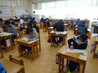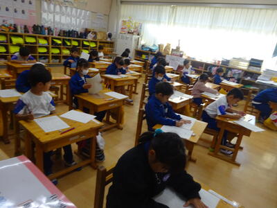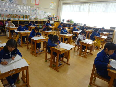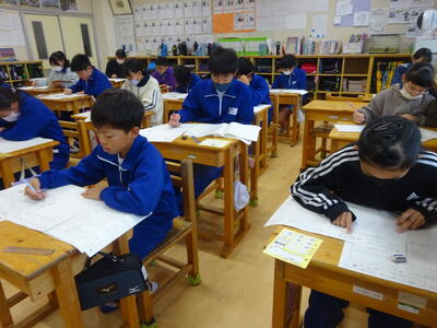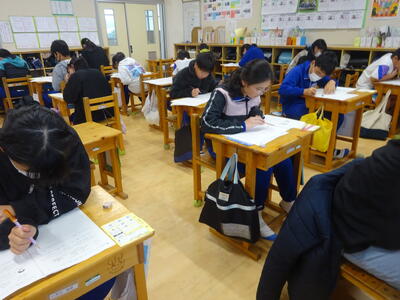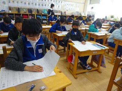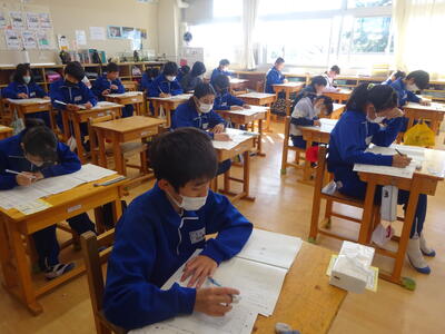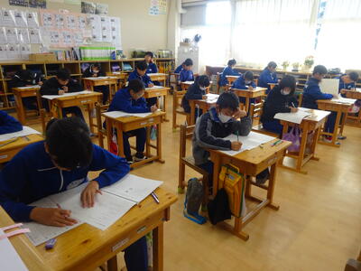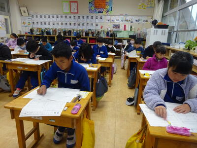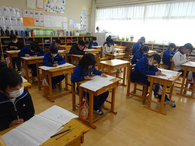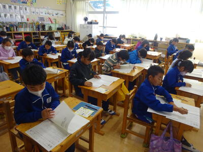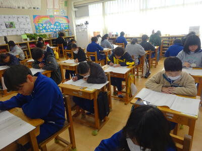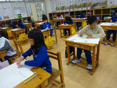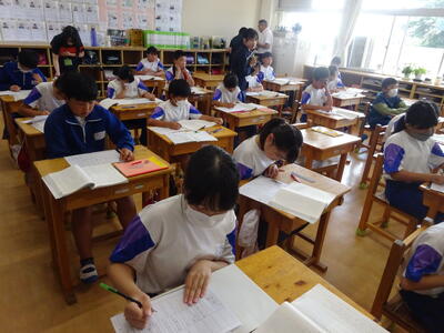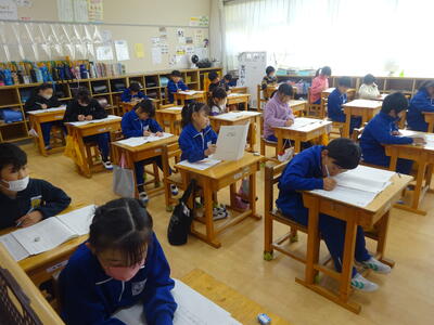 全校で学力調査を行いました。今日は国語、高学年は社会も行いました。どのクラスも、真剣に取り組んでいました。
