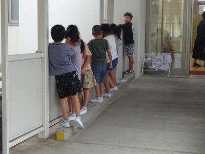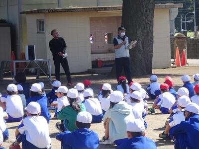 真岡警察署のサポーターさんや中駐在所の巡査さんに来ていただき、不審者の避難訓練を行いました。不審者が昇降口から入ってきた設定で、教室でどのように非難するかを確認したり、講話を聞きロールペレイングを行ったりしました。