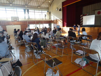来年度入学予定のお子さんの就学時健康診断がありました。内科検診・歯科検診は学校医・学校歯科医の先生方に来ていただき行いました。保護者の方と離れて検査などをする場面もありましたが、しっかりと話を聞いて取り組んでいる様子が見られました。体育館では、保護者同士のワークショップも行いました。