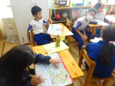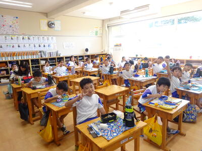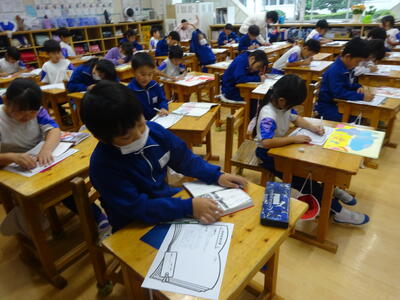2学期になり、1年生の学習活動の様子もすっかり小学生らしくなってきました。アサガオの種をとり、プレゼントに仕上げていた1組。国語の物語のあらすじをとなりの友達やみんなで確認をしていた2組。一歩一歩着実に成長している様子が見られます。
