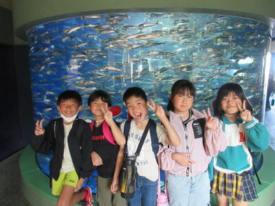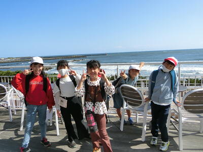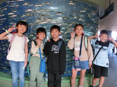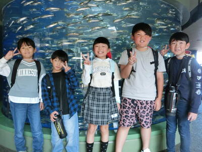 3年生は、大洗水族館アクアワールドに行ってきました。天候に恵まれ、遠足日和でした。グループで館内を見学した後、お弁当を食べながら、イルカのショーを見ました。